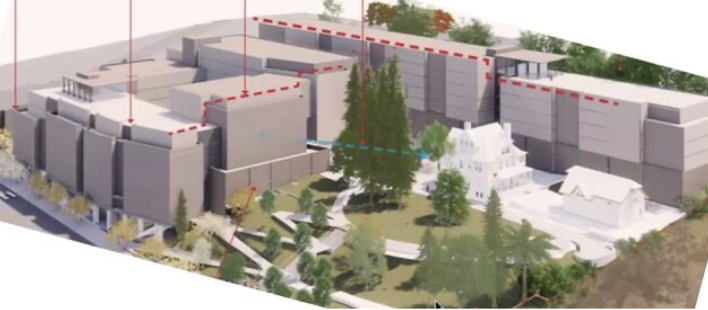 Marc Babsin of the Emerald Fund, along with John Clawson of Equity Community Builders, presented an update on the plans for redeveloping the California College of Art’s Oakland campus, located along the east side of Broadway just north of Shops at the Ridge. Mr. Babsin said that plans for the project have not changed significantly from the last presentation to the community, in the Fall of 2020. However, he also said that Oakland planning staff asked that they add a “variant” proposal that again included a 19-story residential tower.* He emphasized, however, that the developers still intend to build their more recent proposal, with a maximum height of eight stories (90 feet). The aim of adding a tower option was to include information about it in the Environmental Impact Report being prepared, in case the City Council decided it wanted a larger project.